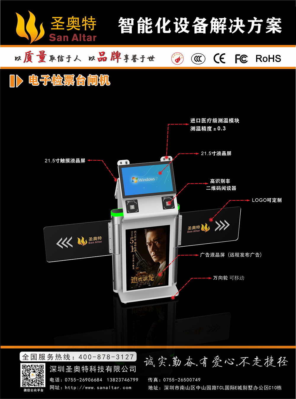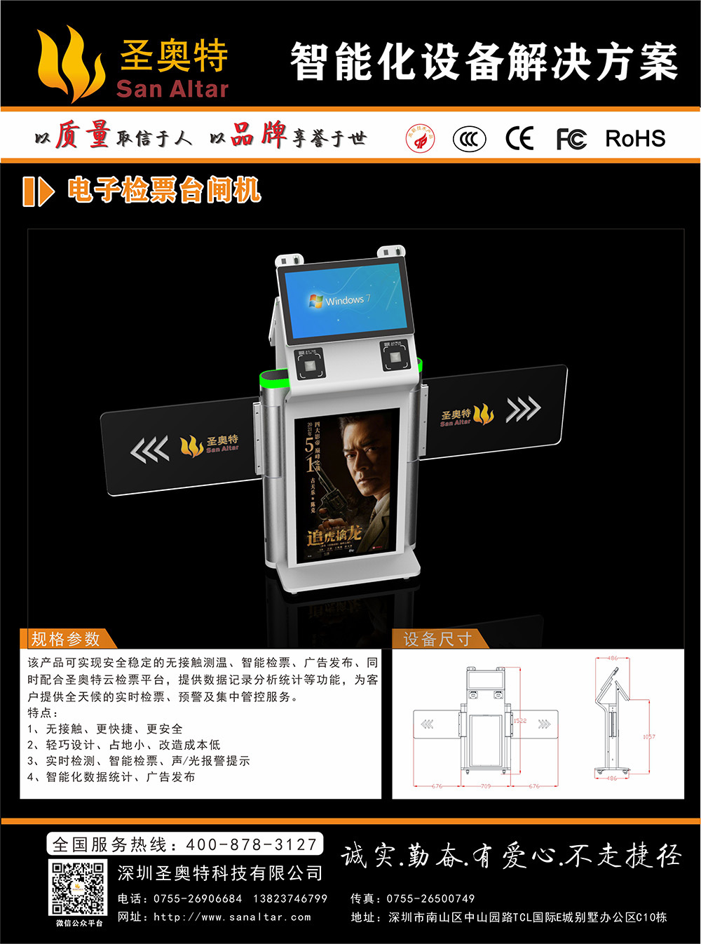 運營人力。該產品可實現安全穩定的無接觸測溫、智能檢票、廣告發布、同時配合圣奧特云檢票平臺,提供數據記錄分析統計等功能,為客戶提供全天候的實時檢票、預警及集中管控服務。