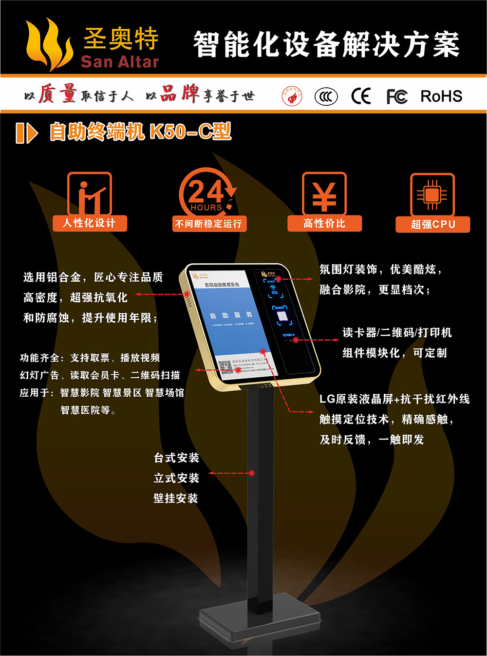 6、組 件:二維碼閱讀器、RFID讀卡器、面板式影票熱敏打印機;