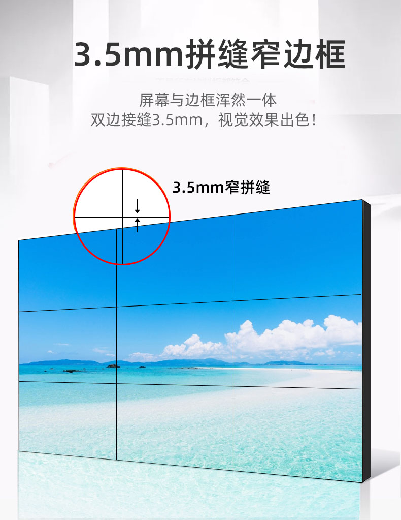1、屏幕:49 55英寸液晶屏(16:9),IPS硬屏,LED背光;2、分辨率:1920*1080 ;3、亮度:≥500cd/㎡;4、水平和垂直拼縫尺寸:3.5mm;5、拼接方式:2*2;6、配置:WIFI、音箱,USB、HDMI、LAN IN、DVI IN、VGA、RS232 IN\OUT接口;7、安裝方式:前維護液壓支架壁掛安裝;8、配備多媒體網絡播放盒以及大屏控制軟件;9、使用壽命≥60000小時,質保三年;10、品牌:京東方