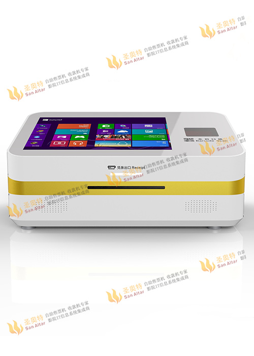 K20 Mini桌面自助售票、取票機 外觀:迷你、小巧輕便、使用8寸電容屏、時尚玲瓏、顏色亮麗。 特點:高性價比、節省空間、省電節能環保、雖小巧但可裝110mm大紙卷、易運輸、可使用年限5-10年。 功能:售票、取票、讀取會員卡、二維碼掃描、支持第三方支付
